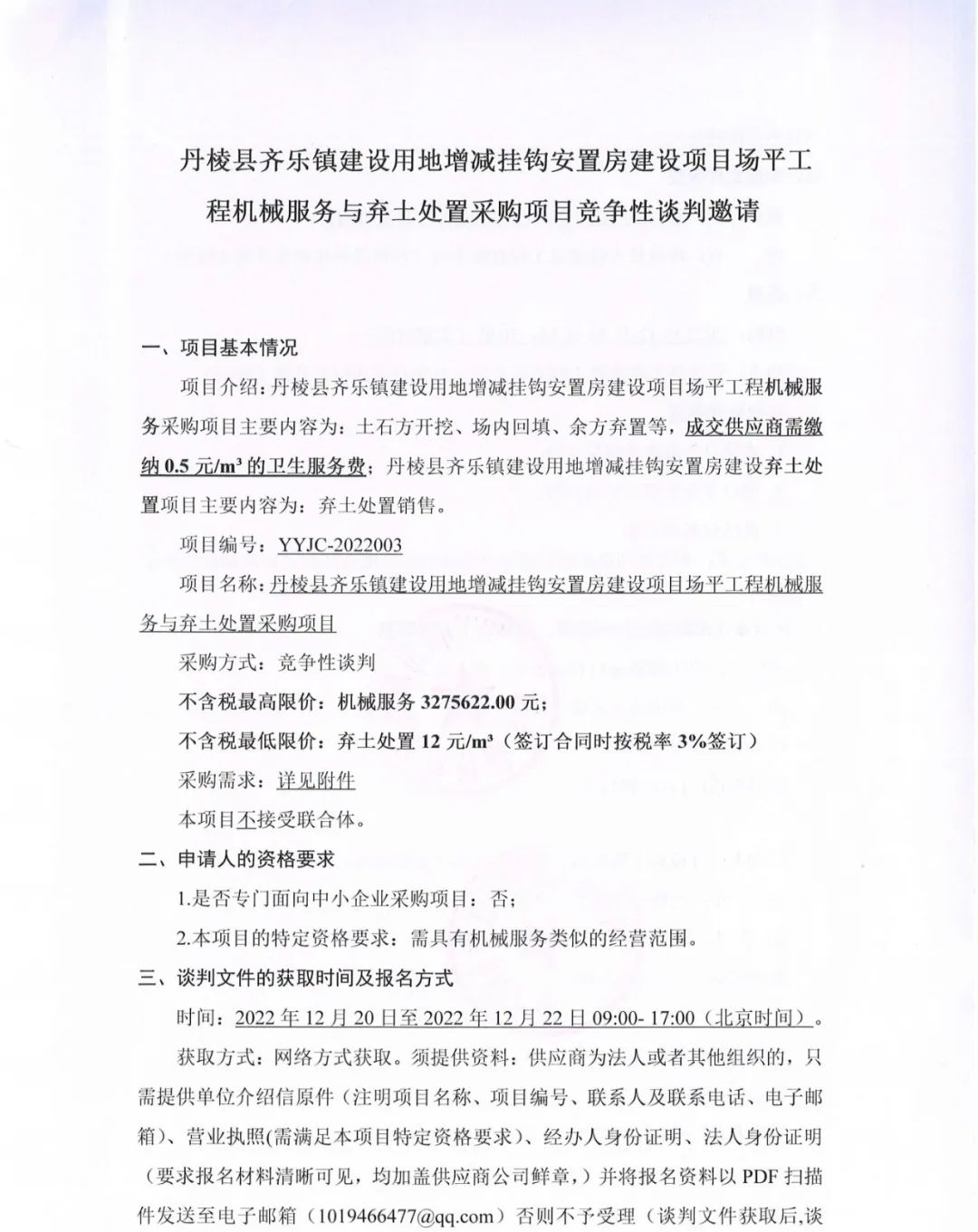 丹棱縣齊樂鎮(zhèn)建設(shè)用地增減掛鉤安置房建設(shè)項目場平工程機(jī)械服務(wù)與棄土處置采購項目競爭性談判邀請