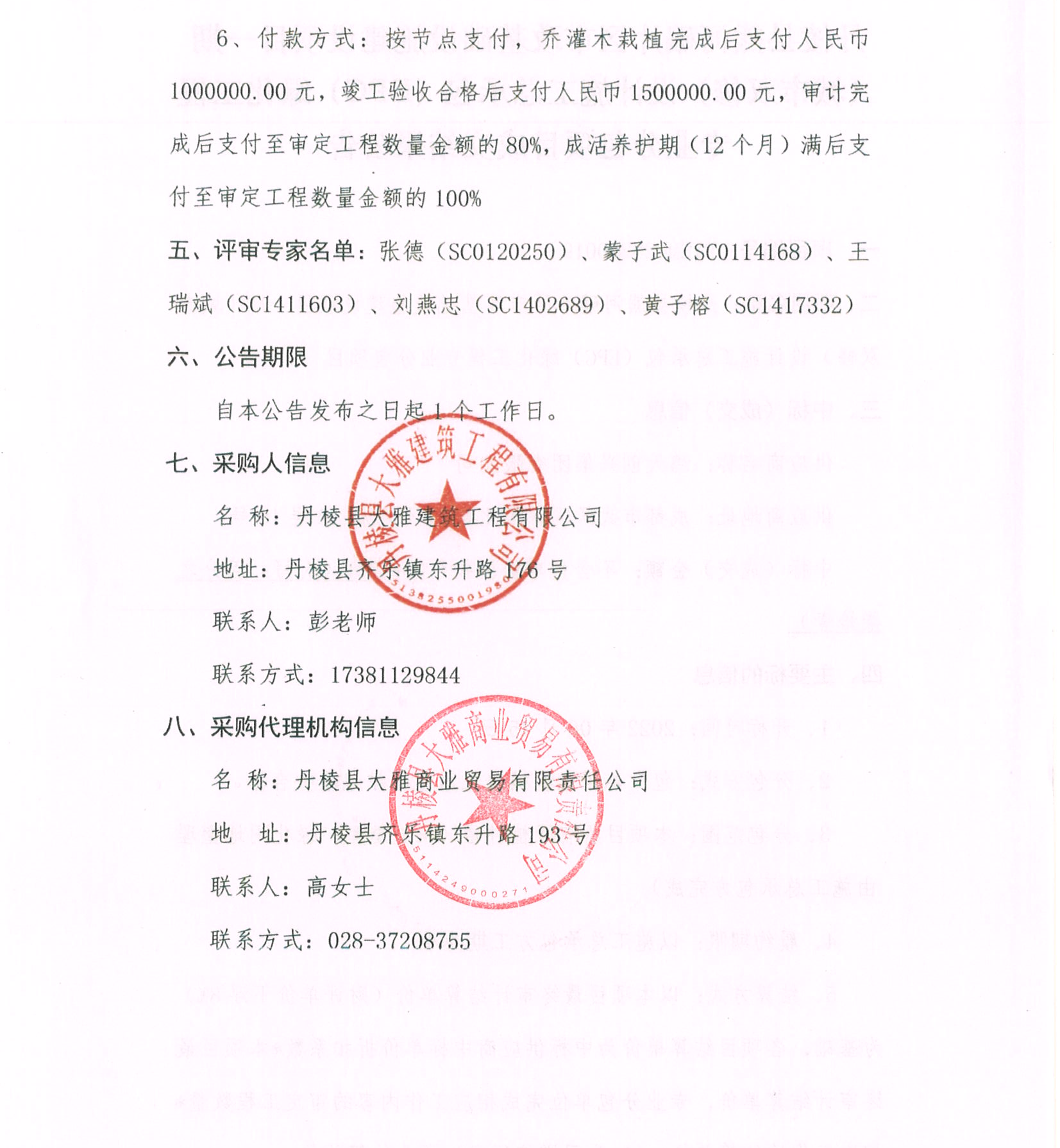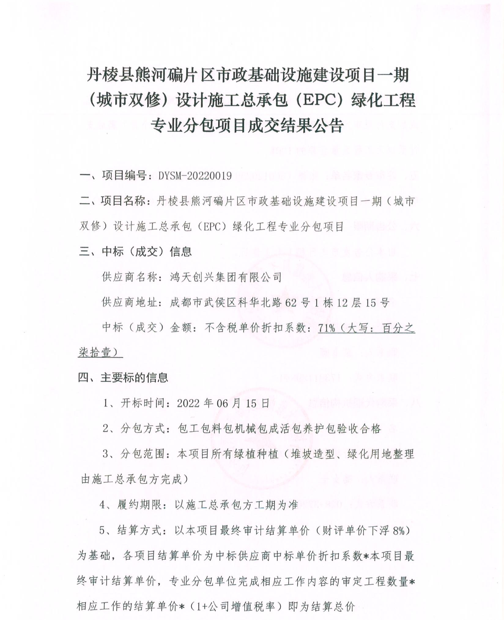 丹棱縣熊河碥片區(qū)市政基礎(chǔ)設(shè)施建設(shè)項(xiàng)目一期(城市雙修)設(shè)計施工總承包(EPC)綠化工程 專業(yè)分包項(xiàng)目成交結(jié)果公告