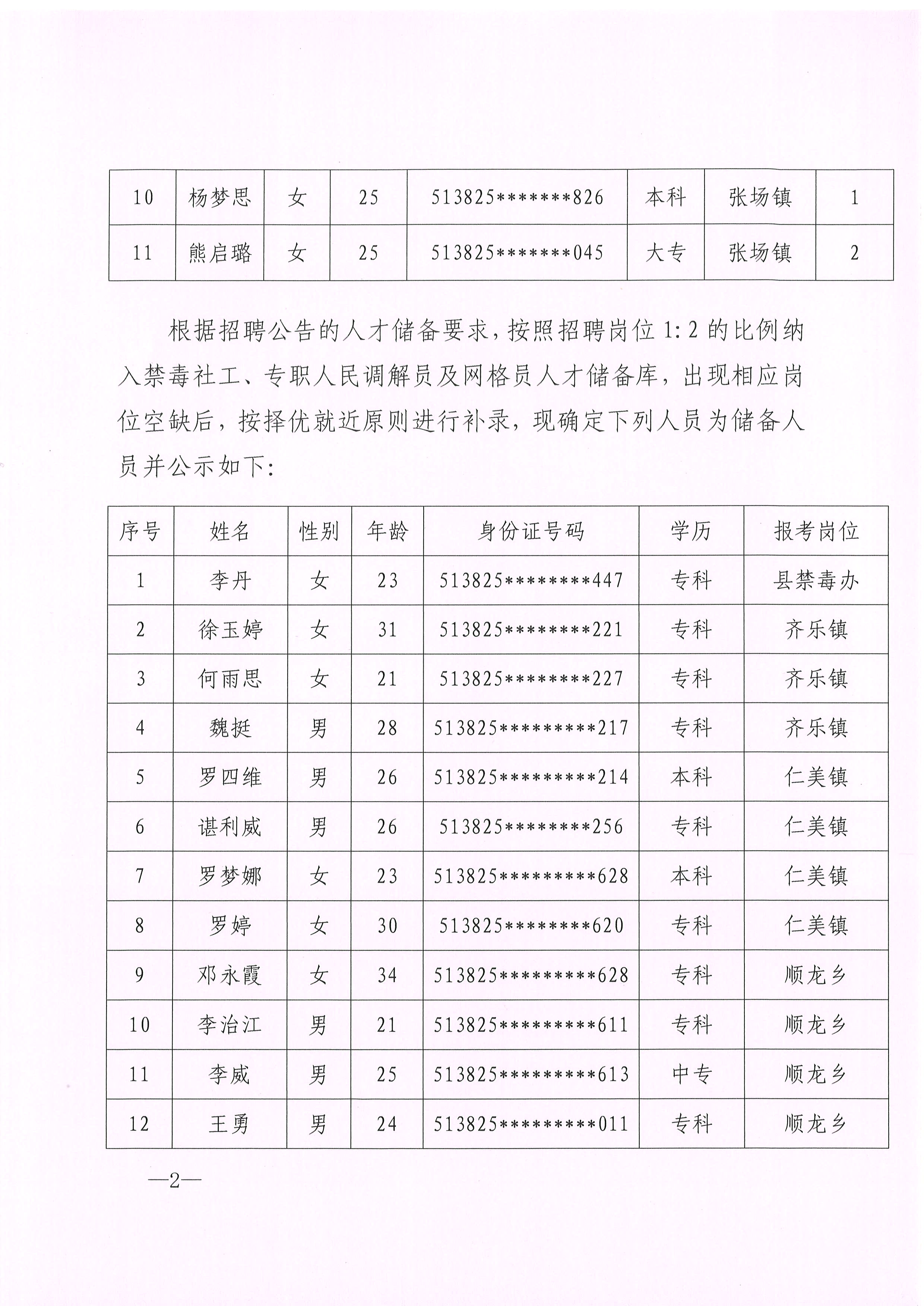 【大雅勞務(wù)公司】丹棱縣大雅家園勞務(wù)服務(wù)有限公司關(guān)于為丹棱縣公安局、縣司法局、縣禁毒委員會辦公室公開招聘勞務(wù)派遣人員的擬聘用和儲備人員公示