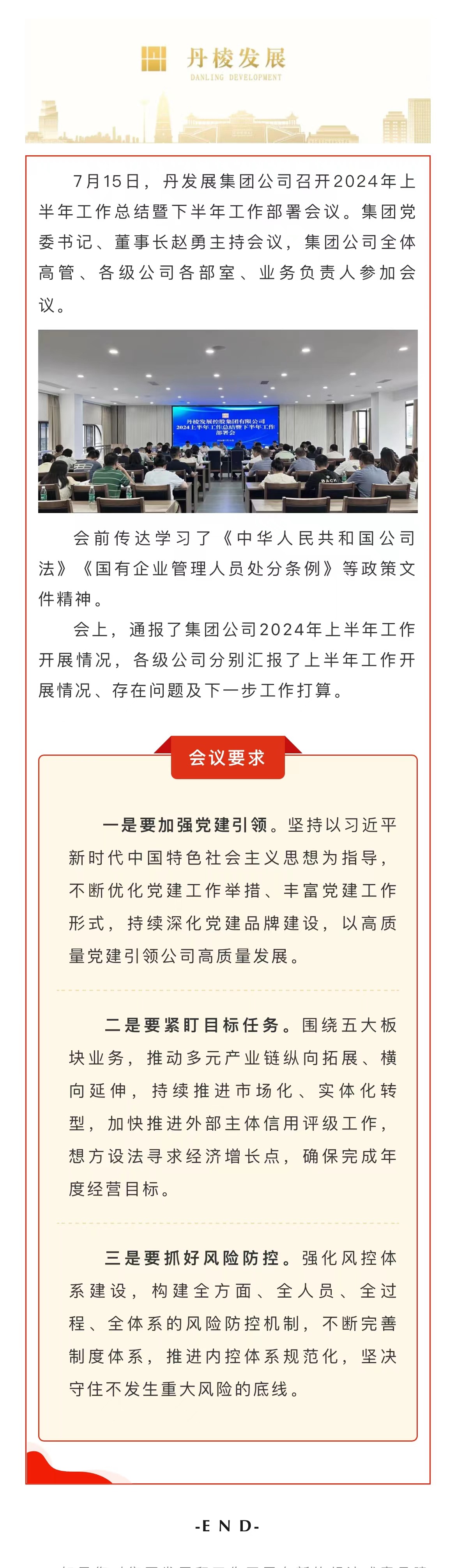 對(duì)標(biāo)對(duì)表再提升 砥礪奮進(jìn)下半程丨丹發(fā)展集團(tuán)公司召開(kāi)2024年上半年工作總結(jié)暨下半年工作部署會(huì)