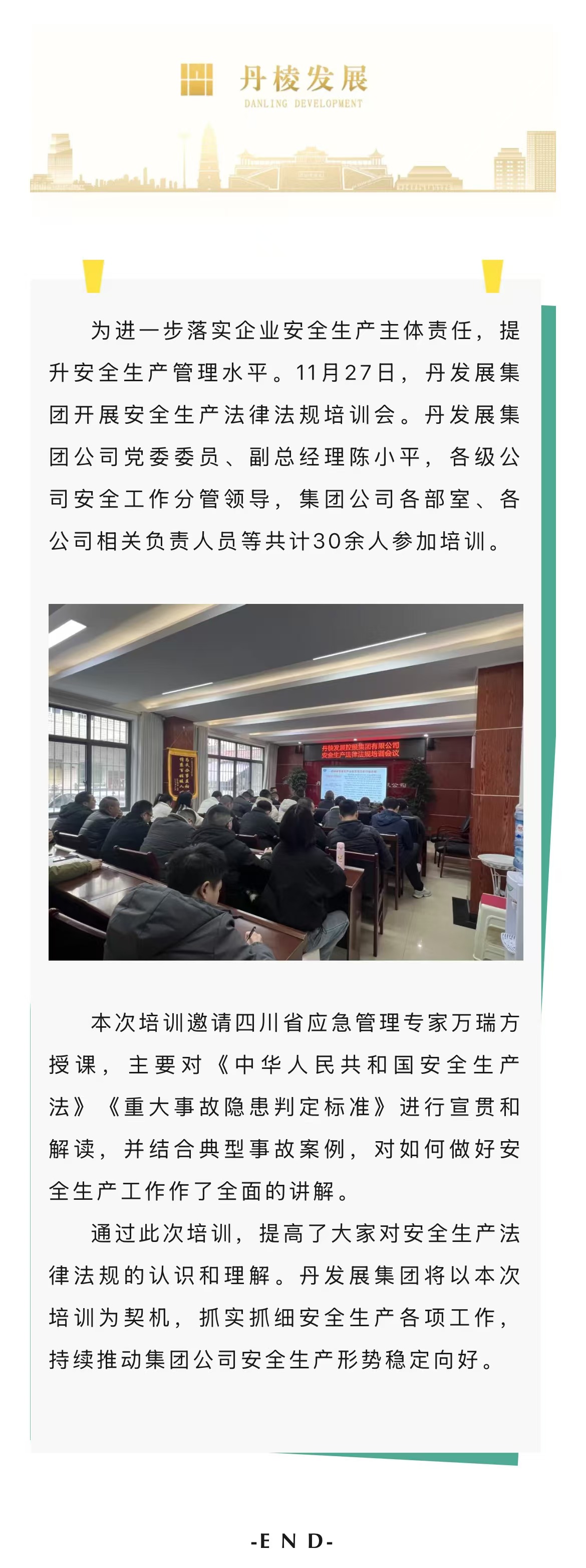 強化安全法律意識,筑牢安全生產(chǎn)基石丨丹發(fā)展集團公司開展安全生產(chǎn)法律法規(guī)培訓(xùn)會